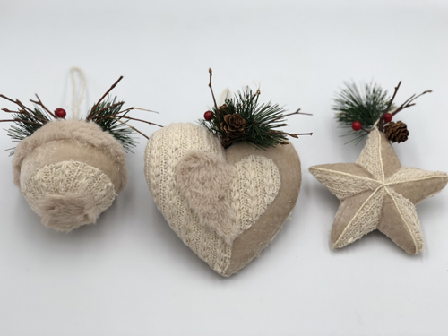 star, heart,ball hanger with pine needle