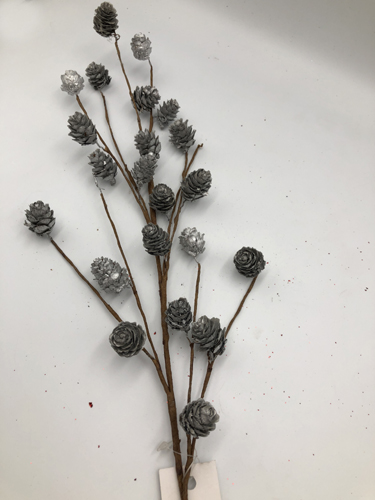 Mini pinecone spray 70x11x2cm silver