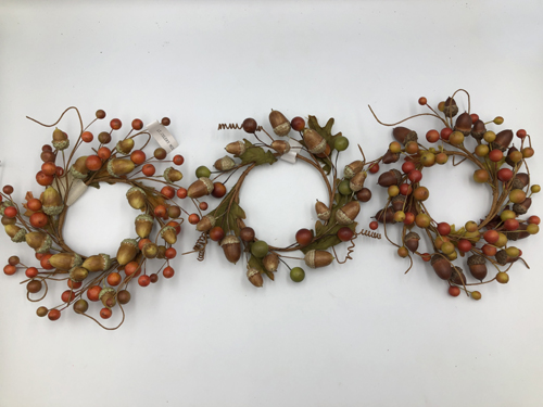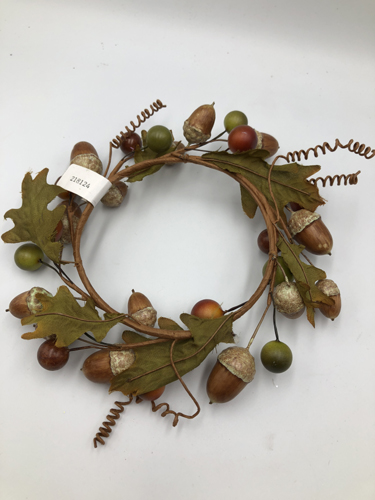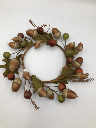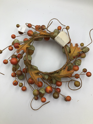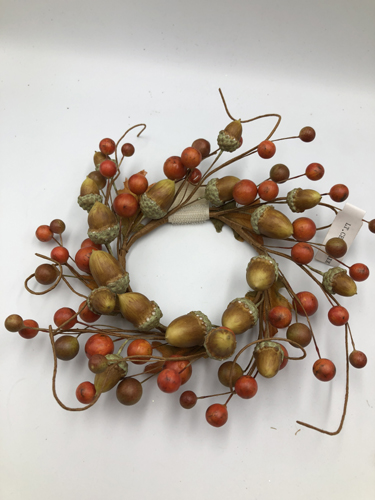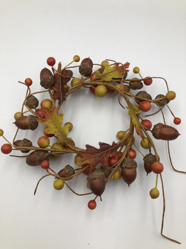 0.9cm mixed leaves + berry + acorn small wreath 15x15x3cm