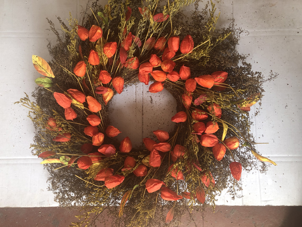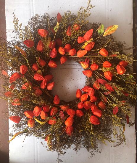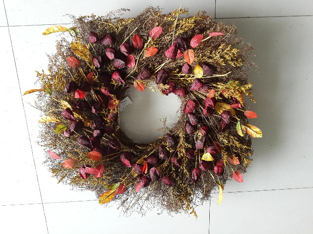 Orange / Burgendy lantern wreath D=70cm